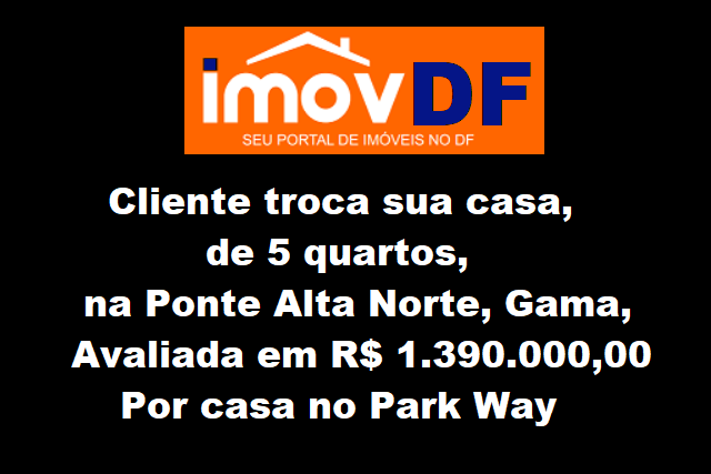 Cliente pretende trocar sua casa, de alto padrão, com 5 quartos, em condomínio fechado, na Ponte Alta Norte do Gama, por casa no Park Way.