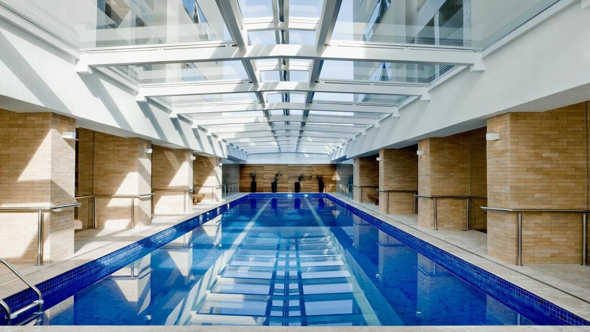 – Piscina aquecida e coberta com raias para natação;
